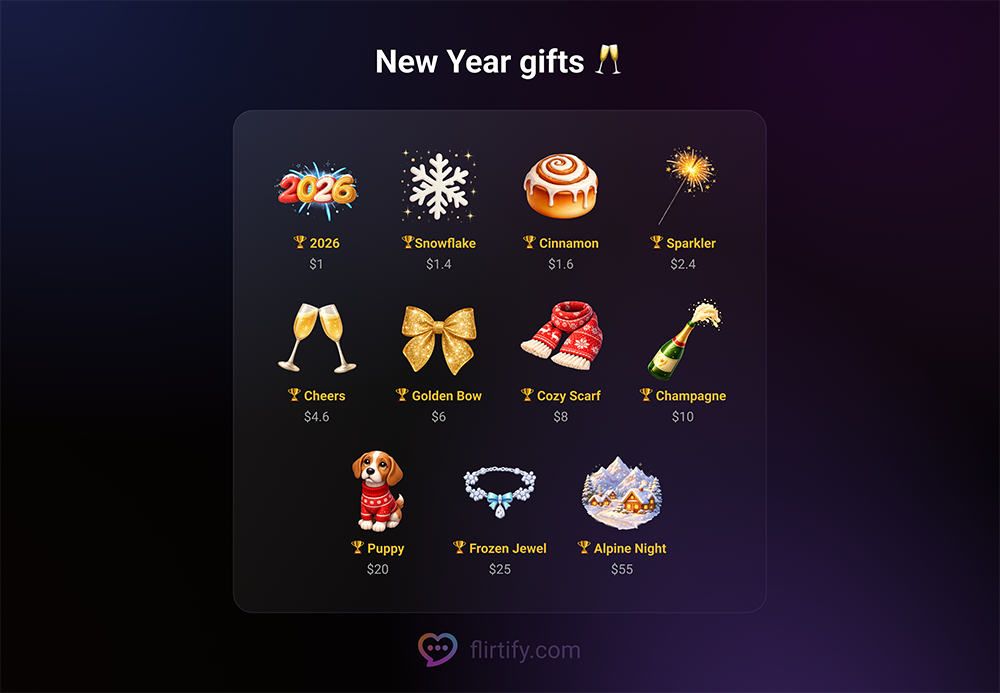 1. Конкурс начинается, как только вы увидите новогодние подарки на Flirtify.
