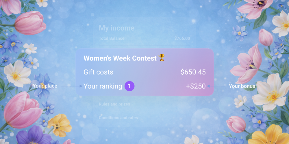 3. Топ-25 моделей, которые заработают больше всего в конкурсе Women’s Week, получат бонус к своей выплате на следующей неделе.